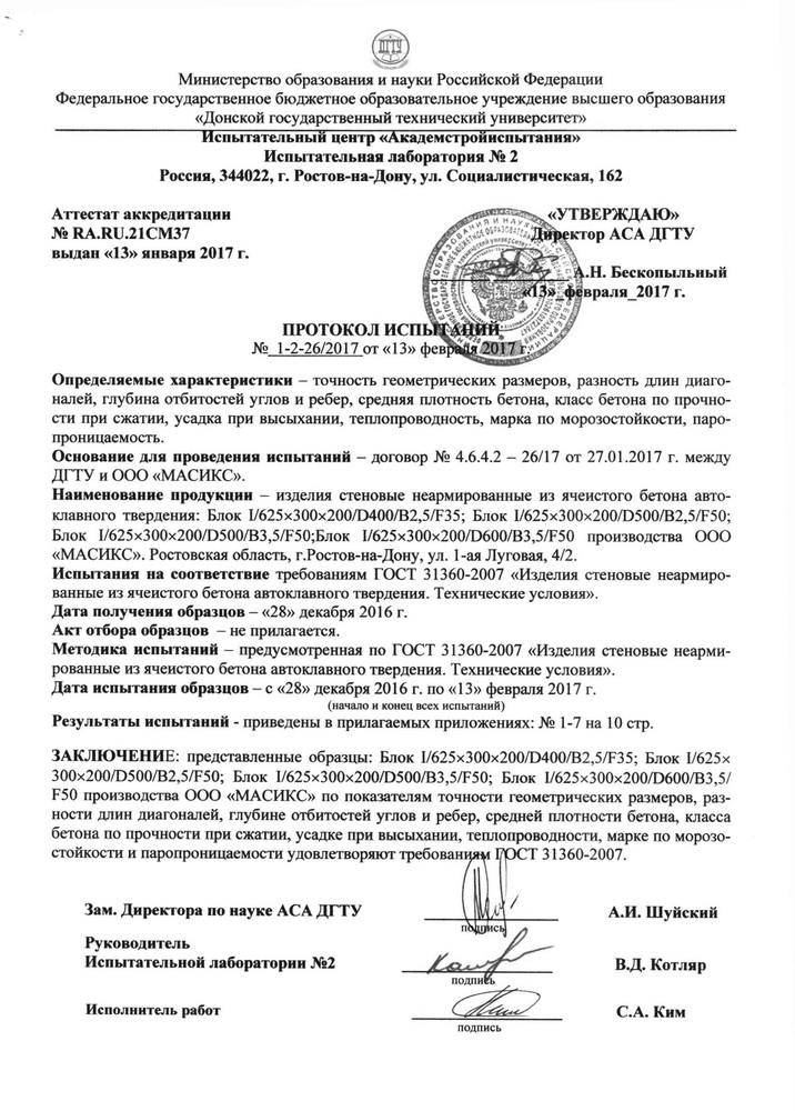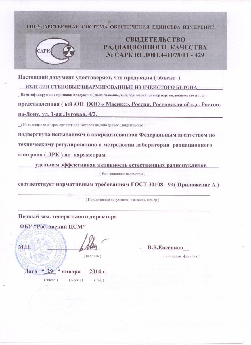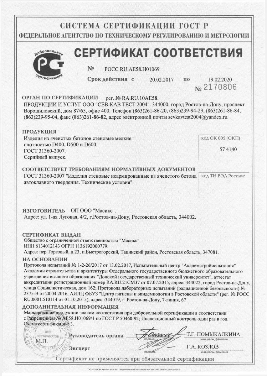Сертификаты газобетона